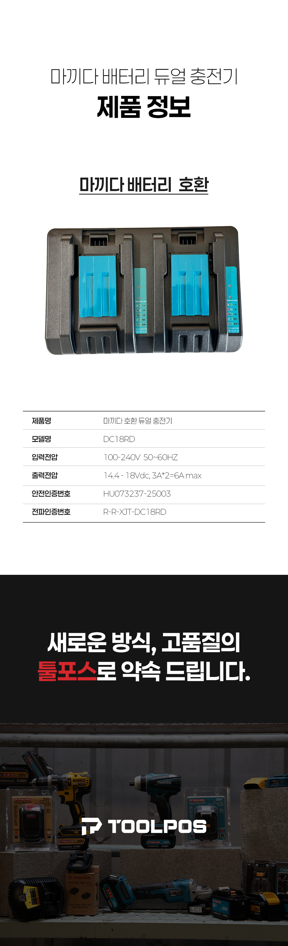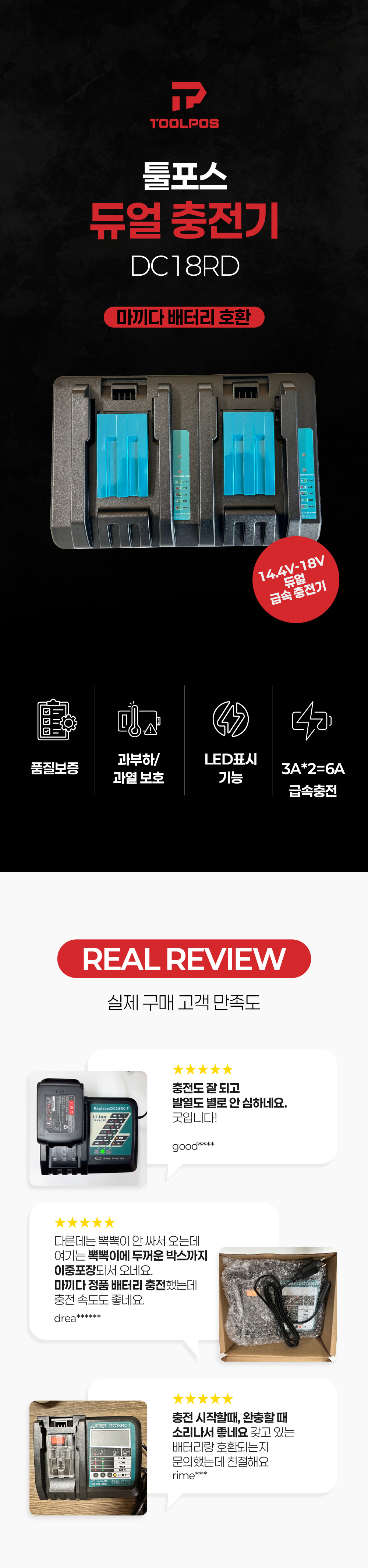 마끼다 배터리 충전기 듀얼 2포트 급속충전기 DC18RD 호환 14.4V 18V 6A