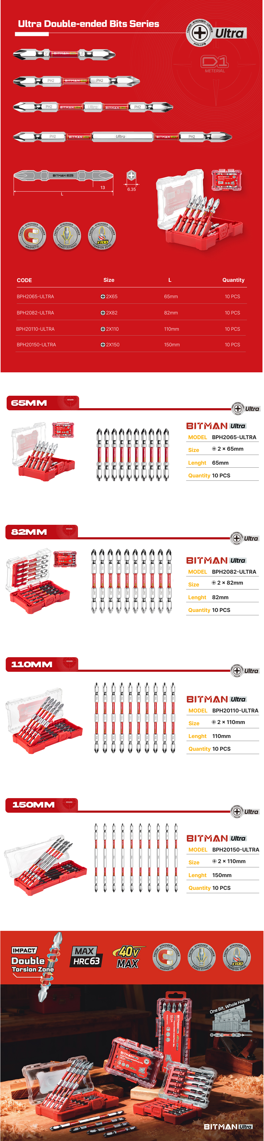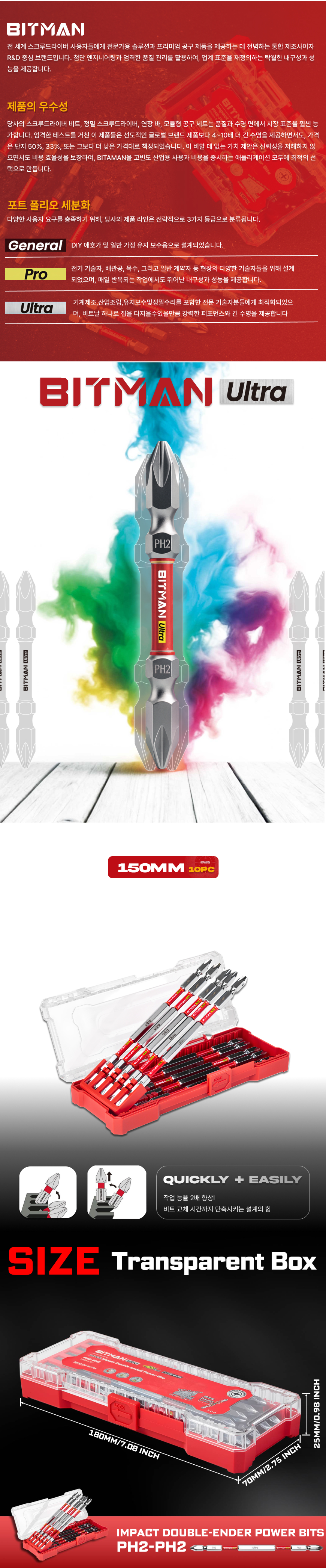 비트맨 울트라 양날 토션 십자 비트 150mm PH2 자석 임팩 드라이버 전동드릴 10개입