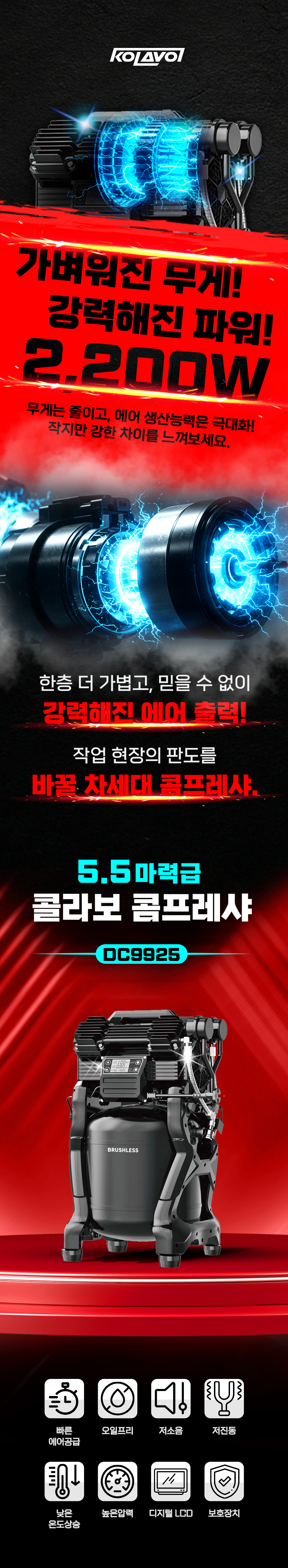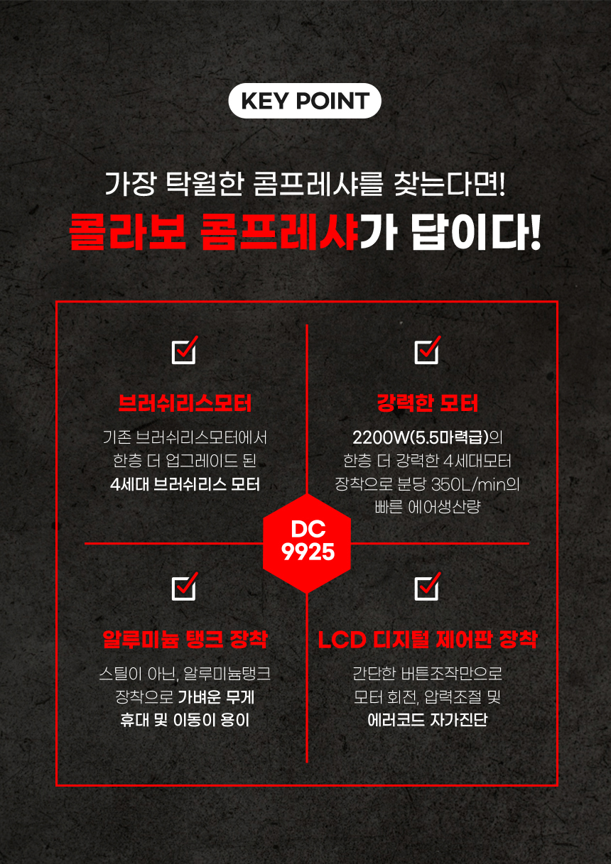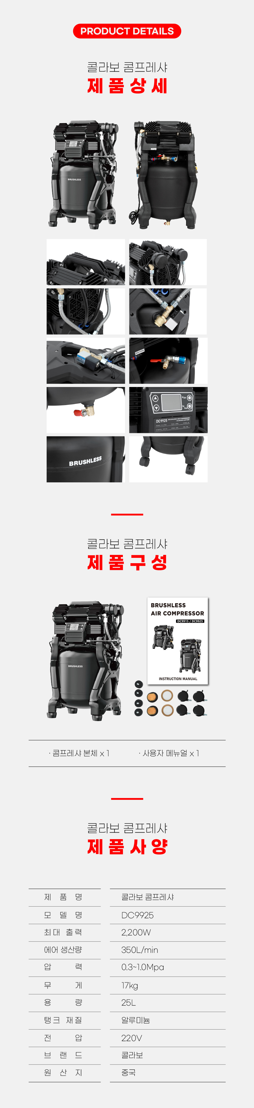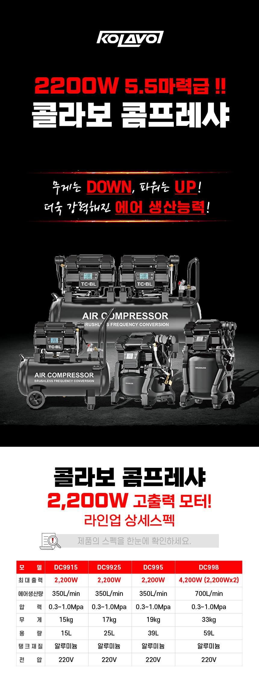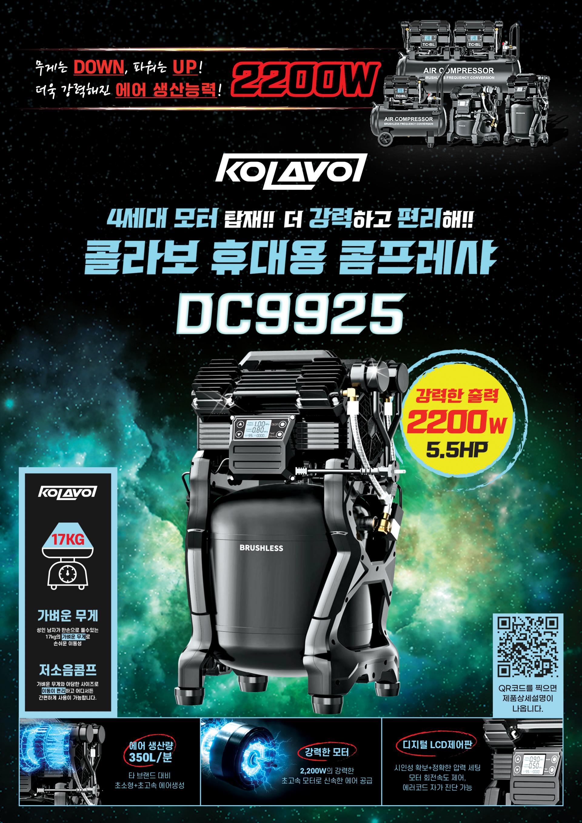 콜라보 콤프레샤 DC9925 휴대용 2200W 25L 알루미늄 220V