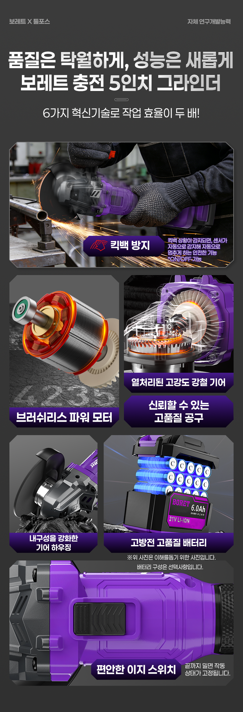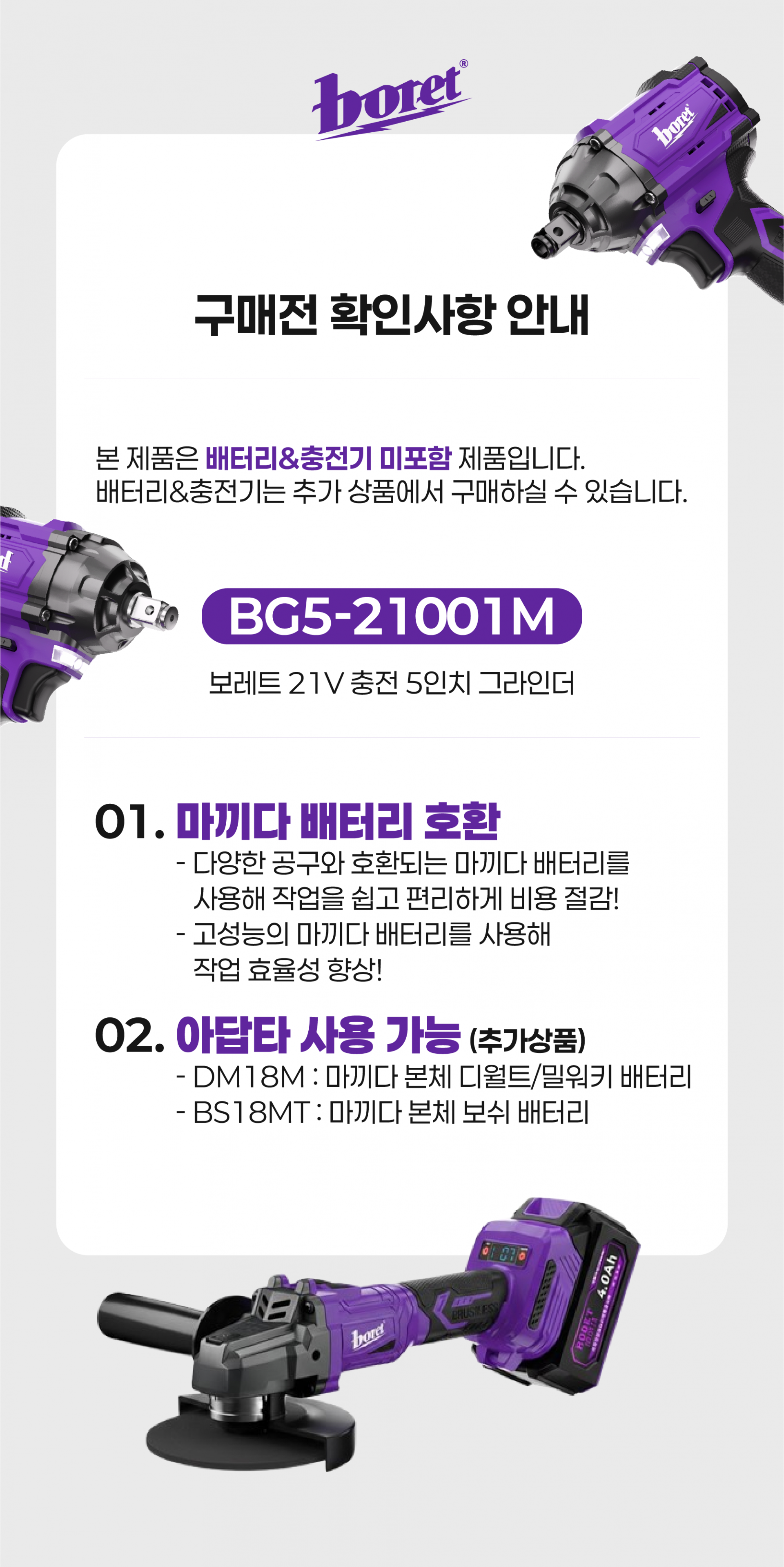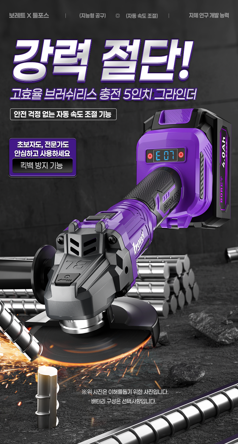 보레트 21V 무선 충전 그라인더 5인치 BG5-21001M 마끼다 호환 공구왕황부장
